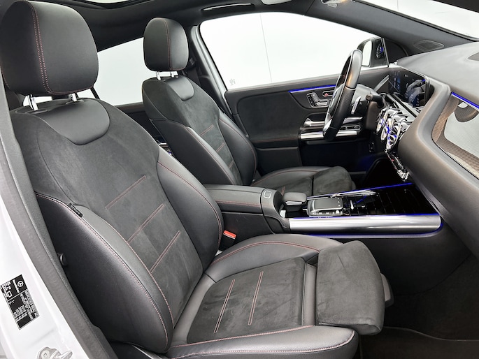 Ontspannen en zorgeloos autorijden, dat doe jij met deze Mercedes-Benz GLA. Deze auto wíl gewoon gezien worden: kijk maar naar de sportieve AMG-styling. Een viercilinder benzinemotor en een automatische transmissie zorgen voor de uitstekende prestaties van deze auto. Je past de stoelen moeiteloos aan, ze zijn elektrisch in te stellen en hebben bovendien een geheugen. Het elektrisch bediende glazenpanorama dak zorgt voor licht en gevoel van ruime. De achterklep opent automatisch met een druk op de knop. Handig als je met volle handen staat. De matrix LED-verlichting is het allernieuwste op het gebied van autoverlichting. Altijd maximaal licht op de weg, zonder tegenliggers te hinderen! Tot de voorzieningen van deze auto behoren 19 inch lichtmetalen velgen, AMG-styling, warmtewerend glas, dynamisch onderstel, in delen neerklapbare achterbank en snelheidsafhankelijke stuurbekrachtiging.