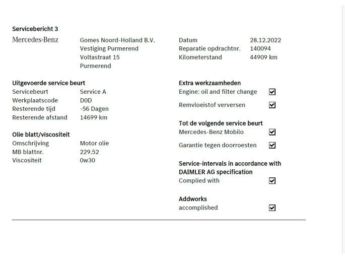Ontdek de digitale mobiliteitswereld, met zijn dashboard dat alle noodzakelijke informatie projecteert om uw reis comfortabel en veilig te maken. Met behulp van de achteruitrijcamera kunt u zo strak inparkeren als u maar wilt! Wat is de onderhoudsstatus van deze auto? U checkt het snel, simpel en overal via uw smartphone. Het audio-installatiesysteem en het navigatiesysteem met harde schijf bedient u veilig met knoppen op het stuurwiel of met gesproken commando's. De automatische airconditioning zorgt voor een behaaglijk klimaat in de auto. U bent in deze Mercedes-Benz ook voorzien van regensensor, cruise control, sportstuurwiel, keyless entry, automatisch dimmende buitenspiegels en bagage afdekhoes.