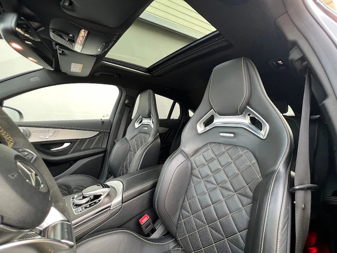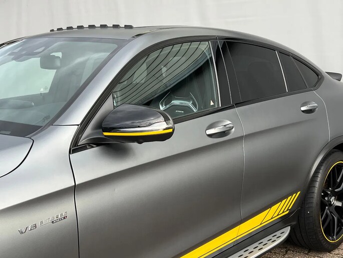 Prachtig mooie en bijzonder compleet uitgeruste GLC 63 AMG S met 510 PK. Deze Coupe is zowel van binnen als van buiten in keurig nette staat. De auto heeft geen schadeverleden en er is niet in gerookt. Hij is Selenietgrijs Magno (matgrijs) van buiten en heeft zwart nappa lederen bekleding van binnen. Er mag een aanhanger getrokken worden van 2170 KG met de wegklapbare trekhaak. Het betreft een 'Edition 1'uitvoering.