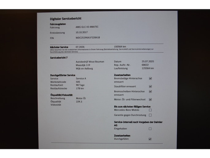 Al decennia staan Duitse merken bekend om hun ongeëvenaarde kwaliteit en prestaties. En dat geldt zeker ook voor deze Mercedes-Benz GLC-klasse. De krachtige benzinemotor van deze auto is gekoppeld aan een automatische transmissie. Comfort en veiligheid hebben een upgrade gekregen in de vorm van luchtvering. Het interieur van deze auto is bekleed met leer voor een ongeëvenaard luxueuze uitstraling. Zit u goed? De stoelen zijn eenvoudig instelbaar dankzij de elektrische bediening met geheugen. Houdt u van frisse lucht en van licht dan zit u helemaal goed met het elektrisch bediende panoramadak. De achterklep opent automatisch met een druk op de knop. Handig als u met volle handen staat. Tot de voorzieningen van deze auto behoren 21 inch lichtmetalen velgen, LED koplampen, adaptief dempingsysteem, warmtewerend glas, zwarte hemelbekleding en treeplanken.