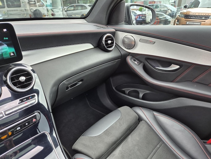 De Mercedes-Benz GLC 43 AMG is een indrukwekkende en sportieve SUV die zowel technisch als qua uitrusting in uitstekende staat verkeert. Wij hebben deze auto eerder mogen verkopen en mogen hem nu opnieuw aanbieden. De auto is volledig onderhouden en is voorzien van een matgrijze wrap, wat hem een extra stoere en exclusieve uitstraling geeft. Dit exemplaar is zeer rijk uitgerust met onder andere een panoramisch dak, elektrische trekhaak, sportuitlaat, ambienteverlichting en diverse high-end pakketten, waaronder het infotainment-, licht- en parkeerpakket. Een complete en krachtige AMG die klaarstaat voor veel rijplezier en comfort.