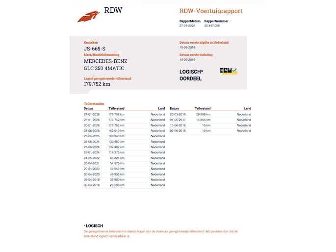 Kilometerstand gecontroleerd