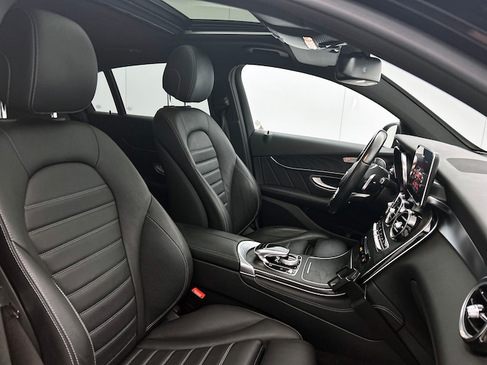 De 360 graden camera wordt mogelijk gemaakt door vier camera's die tezamen werken om zo een uitgebreid zicht te bieden, wat van grote waarde is bij het navigeren door smalle straatjes en parkeerplekken. Het high performance audiosysteem is volledig afgestemd op de akoestiek van de auto; genieten dus! Onbedoeld snijden na het inhalen gebeurt niet meer, dankzij de achteropkomend verkeer waarschuwing. In een auto als deze kunt u niet zonder automatische airconditioning, zodat de temperatuur altijd goed is. Een plekje vinden in de binnenstad is één, inparkeren is twee. Voor dat laatste heeft deze Mercedes-Benz GLC-klasse Coupé prima parkeersensoren die u een handje helpen. Ook dashboard met spraakbediening, navigatiesysteem met harde schijf, WIFI-hotspot, sportstuur met schakelpaddels, regensensor en cruise control zijn aan boord.