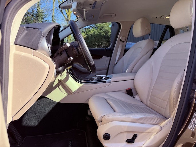 Hele mooie Mercedes GLC van de 1e Eigenaar, origineel Nederlandse auto, dealer onderhouden in de prachtige kleur Dakota Brown Metallic met licht lederen interieur en elektrisch verstelbare stoelen. Werkelijk een plaatje van een auto en volgens de vorige eigenaar altijd binnen gestaan. Volledige historie bekend.