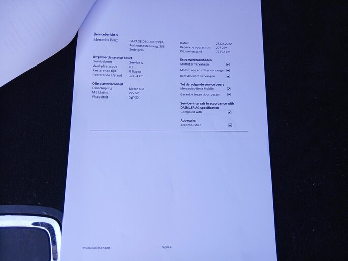 • Onderhoudsbeurt volgens schema