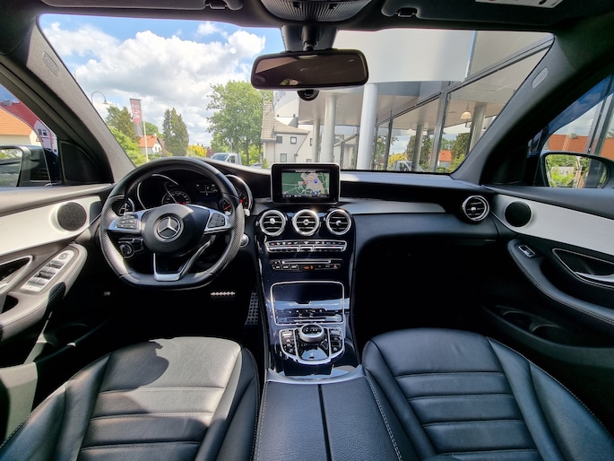 Een belangrijke veiligheidsvoorziening is de bediening van het audio-installatiesysteem en het navigatiesysteem met harde schijf, via knoppen op het stuur en middels spraakbediening. Met de electronic climate control selecteert u de gewenste temperatuur. Het systeem doet de rest. Om de veiligheid onderweg te verhogen, heeft deze Mercedes-Benz zowel een automatisch inschakelbare verlichting als een regensensor aan boord, zodat hij zelf de verlichting en de ruitenwissers kan inschakelen. Ook is de auto voorzien van parkeersensoren voor en achter. Omdat u nu eenmaal niet overal ogen heeft, is deze Mercedes-Benz GLC-klasse Coupé voorzien van een achteropkomend verkeer waarschuwing die registreert wanneer de afstand tot uw achterligger te krap is. De aanwezige cruise control scheelt lekker in brandstofkosten. En ook bij de flitspaal. Met sportstuur met schakelpaddels, dvd-systeem en centrale deurvergrendeling met afstandsbediening is deze Mercedes-Benz helemaal compleet.