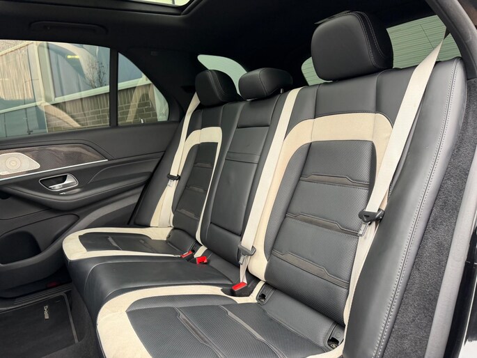 Dynamische styling, zorgvuldig afgewerkt met fraaie materialen en ontworpen met oog voor detail. De Mercedes-Benz GLE-klasse is van binnen en van buiten een toonbeeld van Duits design. Grijze muizen zijn er al genoeg. Daarom heeft deze auto een lekker pittige AMG-styling. De achtcilinder motor en de automatische transmissie maken het rijden met deze auto tot een waar feest. Wat valt er verder op aan dit model? Dat is toch zeker het lederen interieur. En niet te vergeten de elektrisch bedienbare achterklep. Bestuurder en bijrijder krijgen een warm welkom: de verwarmbare voorstoelen zijn bovendien voorzien van massagefunctie. Zit u goed? De stoelen zijn eenvoudig instelbaar dankzij de elektrische bediening met geheugen. Luchtvering zorgt voor een onovertroffen comfort tijdens het rijden. Met het grote glazen panoramadak voelt het alsof u in een cabrio zit. Laat ze achterin ook maar genieten: deze Mercedes-Benz GLE-klasse is uitgevoerd met een verwarmde achterbank. Ook 22 inch lichtmetalen velgen, AMG-styling, LED matrix verlichting, warmtewerend glas, in delen neerklapbare achterbank en LED-achterlichten zijn aan boord.