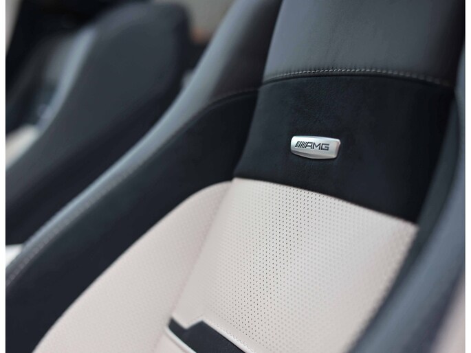 De kleur Emerald Green metallic is zelden gekozen, maar precies dát maakt hem zo aantrekkelijk. In het zonlicht heeft de lak een diepe glans die het gespierde lijnenspel extra accentueert. Binnenin zorgt het contrast tussen zwart en beige leder voor een luxueuze sfeer die je bij instappen meteen ervaart. Het geheel voelt uitnodigend en doordacht aan, met materialen van topniveau en een afwerking die alleen AMG zo levert.