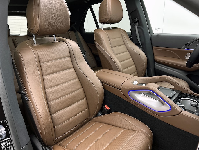 Alle technologie in de Mercedes-Benz GLE-klasse is er op gericht om jouw rit veilig en gemakkelijk te laten verlopen. De AMG Line Exterieur geeft dit model een elegante en opvallende uitstraling. Het gaat hier om een nieuwe auto, die uit voorraad leverbaar is. Zeer laag in brandstofverbruik, hoog in prestaties: deze hybride auto combineert een verbrandingsmotor en een elektromotor. De auto is voorzien van leren bekleding - een fraaie en sfeerverhogende extra. Zit je goed? De stoelen zijn eenvoudig instelbaar dankzij de elektrische bediening met geheugen. Licht, lucht, ruimte en gemak wordt verzorgd door het elektrisch bedienbare glazen panoramadak. Een handige voorziening op deze auto is de elektrische achterklep die je op afstand kunt openen. Deze Mercedes-Benz GLE-klasse heeft een verwarmd stuurwiel. Nooit meer koude handen onderweg. De koplampen met matrix LED-verlichting zijn het hoogst haalbare op het gebied van autoverlichting. Bij de rijke uitrusting horen ook 21 inch lichtmetalen velgen, AMG Line Exterieur, adaptief dempingsysteem, warmtewerend glas, in delen neerklapbare achterbank en LED-achterlichten.