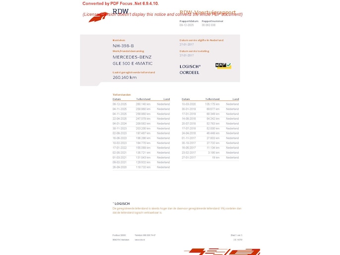 Kilometerstand gecontroleerd