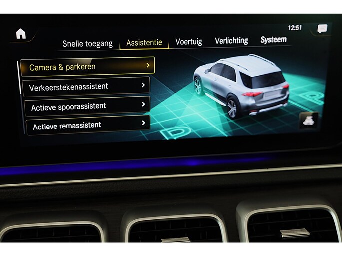 De nieuwste veiligheidssystemen komen in deze Mercedes-Benz GLE-klasse samen. Verkeersborddetectie herkent tijdelijke en permanente verkeersborden langs en boven de weg. Voorzien van het Lane-keeping systeem. Ofwel: blijf automatisch in je baan. Mindert een voorligger onverwachts te veel vaart, dan komt de forward collision warning in actie en waarschuwt meteen. Verder is deze auto uitgerust met head-up display, dodehoekdetectie, accident avoidance system, Abs - anti blokkeer systeem met brake assistant en bandenspanningcontrolesysteem.