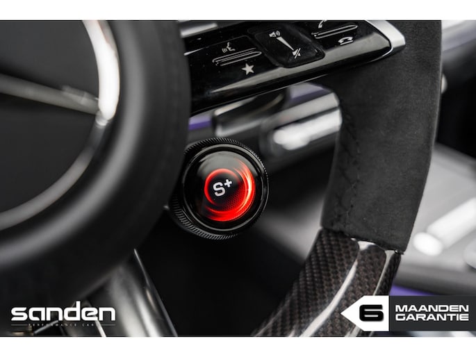 Ook op comfortgebied is dit exemplaar volledig uitgerust. De luchtvering zorgt voor een perfecte balans tussen dynamiek en rijcomfort. Het interieur is afgewerkt met hoogwaardige materialen, waaronder Alcantara accenten en elektrisch verstelbare stoelen met memory- en ventilatiefunctie. Het grote panoramadak, het premium Burmester audiosysteem, Head-Up Display en het 360º camerasysteem maken het geheel technologisch en luxueus compleet.