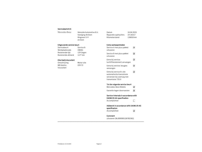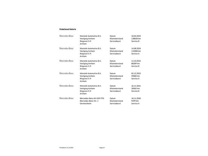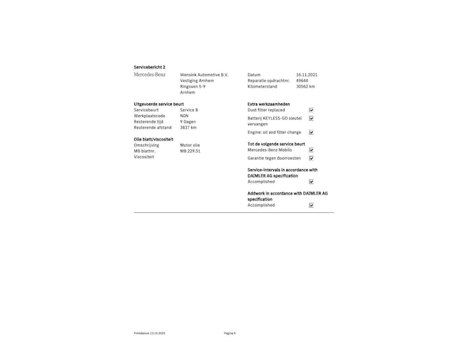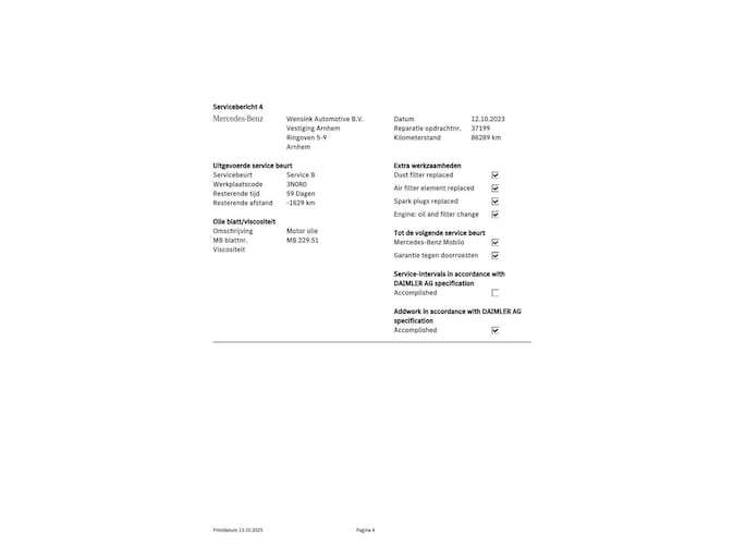 - Onderhoudshistorie aanwezig: Ja