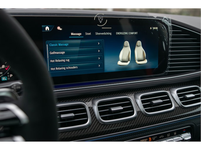 Het interieur combineert luxe en techniek. Het head-up display houdt uw blik op de weg, het Burmester audiosysteem vult de cabine met een vol en helder geluid en het 360 graden camerasysteem maakt elke manoeuvre eenvoudig. Alles functioneert precies zoals u mag verwachten van een GLE Coupé op dit niveau.