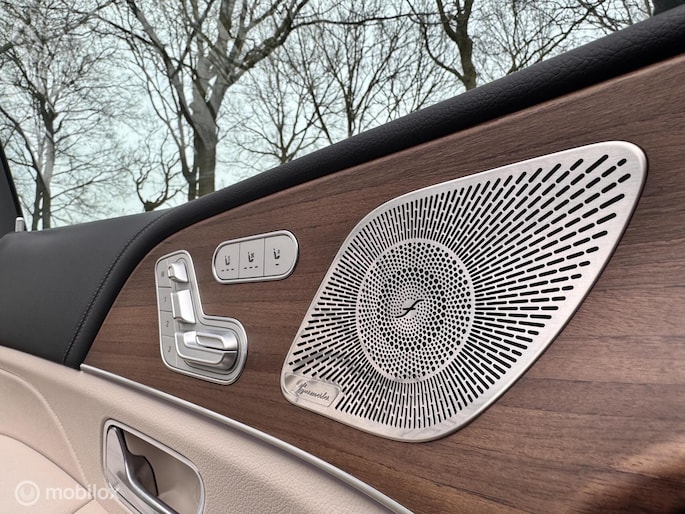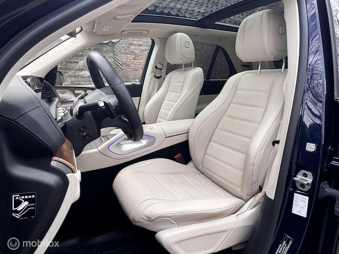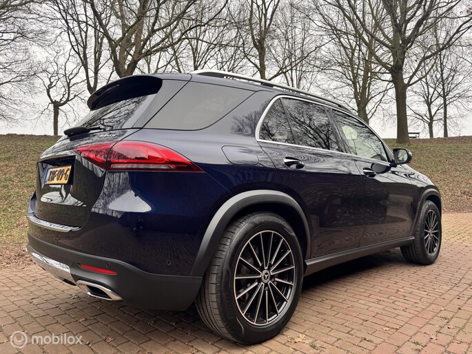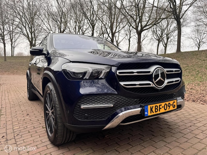 Bijzonder compleet uitgevoerde Mercedes-Benz GLE 350e. Uitgevoerd in het zeldzame MANUFAKTUR Cavansite Blue metallic, gecombineerd met een licht lederen interieur en walnotenhout.