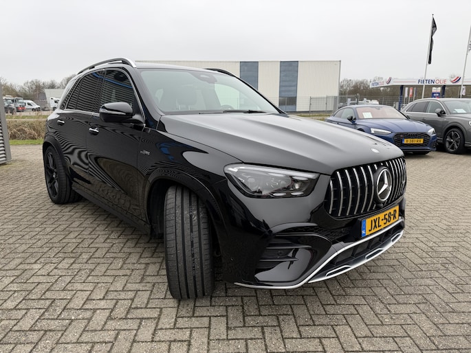 Nieuw binnen bij AutoHuiz BV Winschoten, een zo goed als nieuwe en zeer rijk uitgeruste Mercedes-Benz GLE-klasse AMG 53 Hybrid 4MATIC+ in de kleur Obsidian Black Metallic.