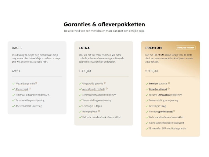 • Auto Wens Premiumpakket (€ 899 meerprijs):
