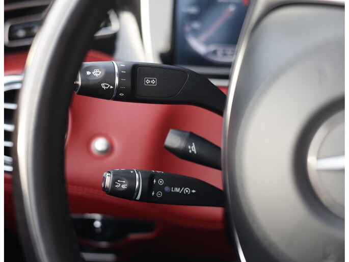 De zetels en het dashboard zijn bekleed met zacht rood en “Aubergine” volleder, evenals het AMG stuurwiel. De zetels, overigens, zijn volledig naar wens instelbaar, voorzien van verwarming en ventilatie, en passen zichzelf aan wanneer u een bocht neemt zodat u altijd van optimale steun geniet.