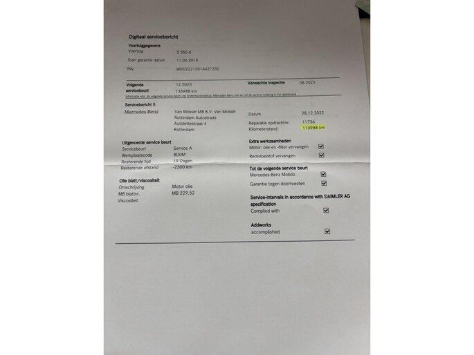 - Onderhoudshistorie aanwezig: Ja