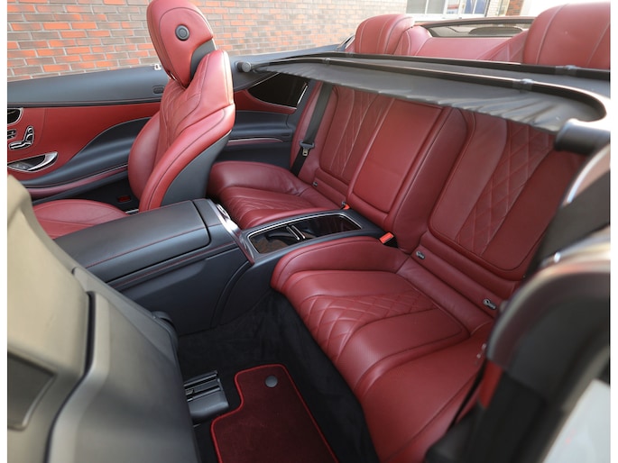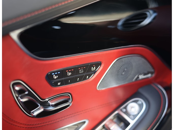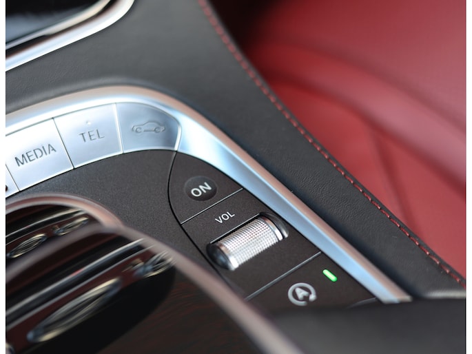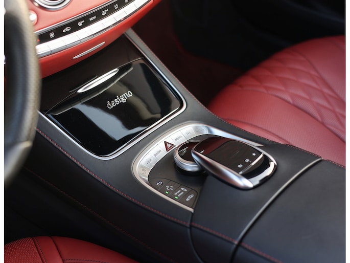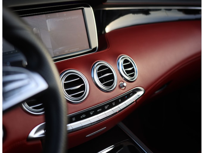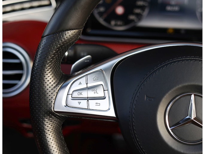 Laten we beginnen met het exterieur. De S-Klasse coupé en cabrio hebben een prachtig design dat met de jaren steeds mooier wordt. Het zal ons dan ook niet verbazen als dit in de toekomst een echte klassieker wordt. Deze S500 Cabrio is uitgevoerd in Diamond White metallic, wat samen met alle chrome details, 20” velgen en het “Ruby Red” soft-top dak zorgt voor een prachtige chique uitstraling.