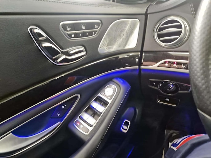 Dankzij het chauffeurspakket is ook de achterbank van uitzonderlijk hoog niveau, met maximale focus op comfort en ontspanning. Het panoramadak zorgt voor een lichte en ruimtelijke ambiance in het interieur, terwijl de 360° camera het manoeuvreren met deze limousine verrassend eenvoudig maakt.