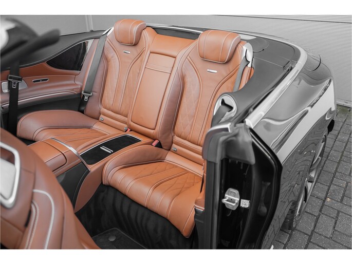 Autobedrijf Schouten biedt u deze Mercedes-Benz S-Klasse Cabrio AMG 63 4MATIC aan. De S63 AMG is uitgevoerd in de diepe metallic kleur: 'Obsidianschwarz', gecombineerd met een bruin luxe lederen interieur. Verder beschikt de Mercedes-Benz S-Klasse Cabrio AMG 63 4M over een mooie lijst met fabrieksopties. Denk hierbij aan opties zoals: