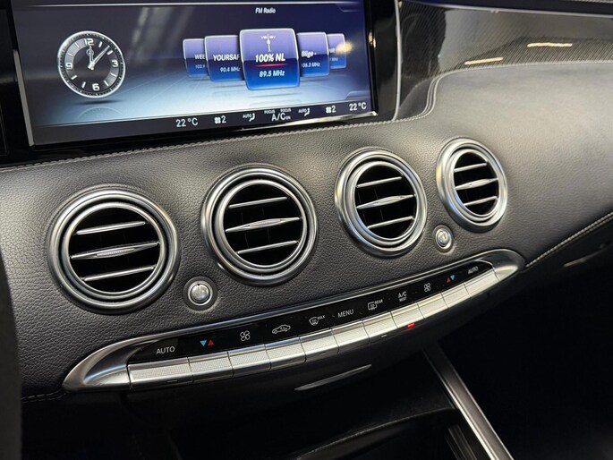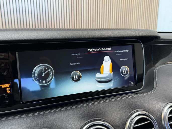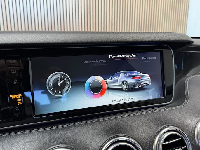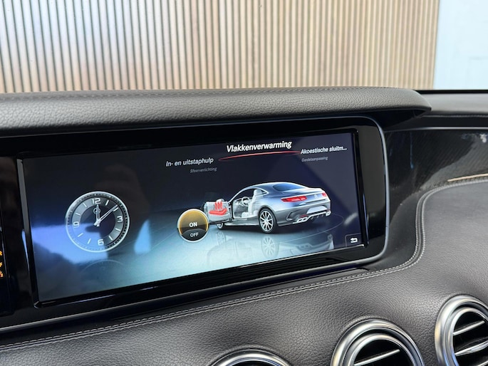 Zoals u mag verwachten van deze Mercedes-Benz S-klasse Coupé is hij uitgerust met een reeks aan actieve veiligheidssystemen. De actuele snelheidslimiet, een inhaalverbod en andere verkeersborden; de verkeersborddetectie ondersteunt u tijdens elke rit. Met het Lane-keeping systeem komt u nooit per ongeluk buiten de rijstrook. In het donker ziet de nachtzichtassistent objecten en gevaarlijke situaties voordat u ze met uw eigen ogen ziet. Ook helpen het head-up display, dodehoekdetectie, accident avoidance system, hill hold functie, brake assist en bandenspanningcontrolesysteem, uw rit tot een veilige rit te maken.