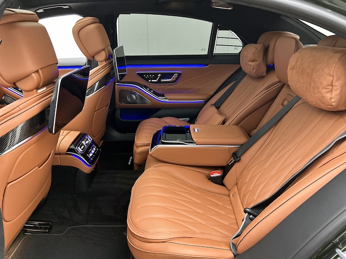 - Business Class-pakket (achterstoel(en) met massagefunctie, achterstoelen verwarmd en geventileerd, Airco separaat achter, Audio installatie high end, Elektrisch verstelb. achterst. met geheugen, Elektrisch zonnescherm achterruit, entertainment system achter, Luxe lederen interieur, Stoel ventilatie voor, TV-ontvanger, Zonnescherm zijruiten)