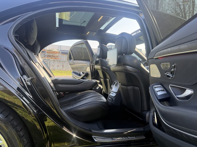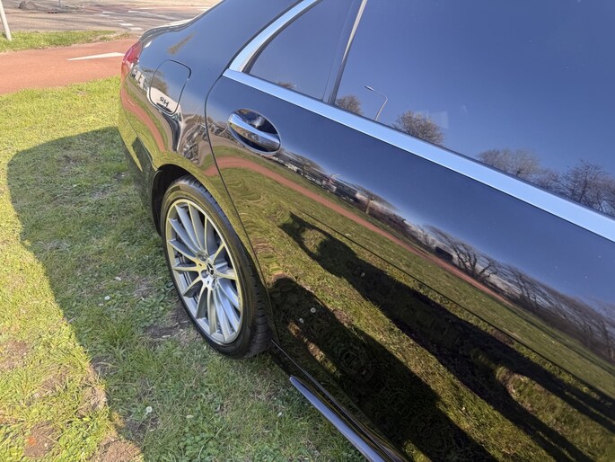 Laat u niets wijsmaken, deze Mercedes-Benz S-klasse biedt alles wat u van een auto verlangt. De elegante lijnvoering wordt versterkt door subtiele AMG-styling details. De zescilinder motor in combinatie met de automatische transmissie maken het rijden met deze Mercedes-Benz tot een waar feest. Voor een optimale rijhoogte, meer comfort en verhoogde stabiliteit zorgt de automatische luchtvering. Binnenin zien we een fraai afgewerkt lederen interieur. Ongeacht hoe koud het buiten is, het verwarmbare stuurwiel samen met de verwarmbare voorstoelen en achterbank, zorgt ervoor dat iedereen in de auto zich snel opwarmt. De koplampen zijn voorzien van matrix LED-verlichting waarmee u aanzienlijk verder kan kijken in het donker. Het systeem past zelf de lichtstraal aan op het moment tegenliggers verblind kunnen worden. Ook elektrische zonnerollo voor de achterruit, 18 inch lichtmetalen velgen, AMG-styling, warmtewerend glas, LED-achterlichten en elektrisch verstelbare achterbank zijn aan boord.