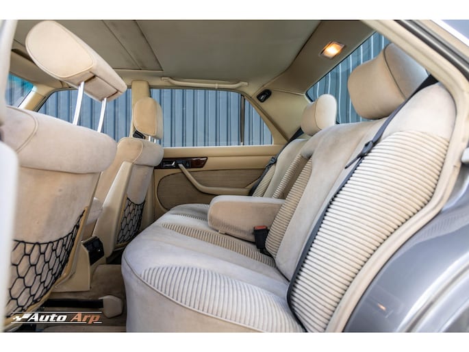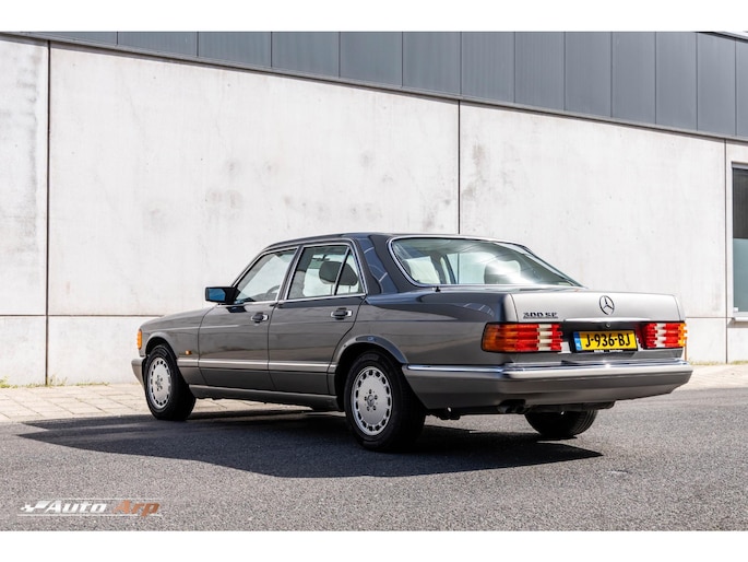 In topstaat verkerende Mercedes (W126) 300SE (6 cyl.) uit 1987 (wegenbelastingvrij) met 20.000 km na revisie in de kleur Astral zilver metallic. (kleurnr. 735 U) Voorzien van automaat, elektrisch schuif/kanteldak, volautomatische airconditioning, stuurbekrachtiging, centrale vergrendeling, elektrische ramen, en beige pullman bekleding, koplampwissers en leeslamp achter. Nieuwe Blaupunkt radio met Bluetooth; originele Becker Mexico radio cassette recorder wordt meegeleverd. Onderhoudsboekje en facturen aanwezig, veel documentatie
