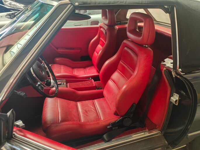 Prachtige kleurcombinatie van antraciet metallic met het rode lederen interieur. Helaas heeft de vorige eigenaar er niet lang van kunnen genieten en binnen de familie is er geen interesse om de auto te behouden, vandaar dat de auto door ons in opdracht wordt aangeboden. Recent is er een taxatie rapport opgemaakt, die een waarde laat zien van €31.500,- Het betreft hier een origineel Europees (Duitsland) geleverde auto en dus geen USA ombouw! De onderkant van de auto is haast nog mooier dan de bovenkant, zoveel zorg is er aan deze auto besteed. De motor en bak schakelen zoals het hoort en er is een LPG installatie gemonteerd waar de Benz perfect op loopt (en een stuk zuiniger...) Want tevens wegenbelasting- en APK vrij. De auto verkeert niet in showroom staat, maar is een absolute headturner. Op de auto zitten nog de volgende opties zoals elektrische ramen, spiegels, lederen sport stoelen, originele "kroonkurk" lichtmetalen velgen, windschot en stuurbekrachtiging. Het originele stuurwiel is ook aanwezig. Kom hem bewonderen en genieten want hij is klaar om de komende zomer er eens lekker op uit te trekken.