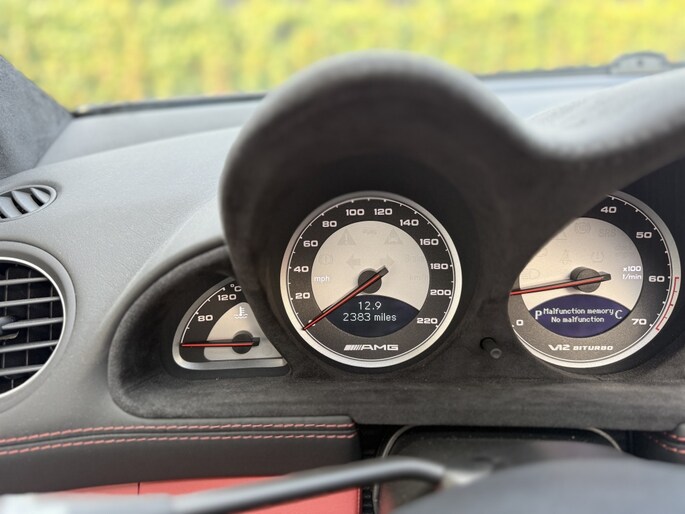 This Mercedes-Benz SL65 AMG is equipped with its original 6.0 liter V12 Biturbo engine that produces 612 hp. The power is transmitted by a very smoothly shifting automatic gearbox. The car drives well, shifts properly and brakes well. The car is in very good condition and has been very well maintained. All history is there!