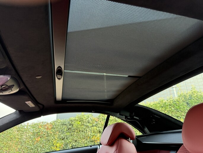 Het interieur van de Mercedes-Benz is uitgevoerd in het rood leder. Het hemel is uitgevoerd in het zwart alcantara. Verder is de auto voorzien van zijn originele AM/FM radio/CD speler/Navigatiesysteem met Bose geluidssysteem, originele pook-knop met start/stop knop, Elektrische ramen voor, Elektrisch verstelbare stoelen met memory functie, stoelverwarming, stoelventilatie, airconditioning, Panorama dak en een elektrisch bedienbare hard-top! Het dashboard is afgewerkt met grijs uitgevoerde sierlijsten. Zoals te verwachten is de auto volledig origineel en volledig nieuw!