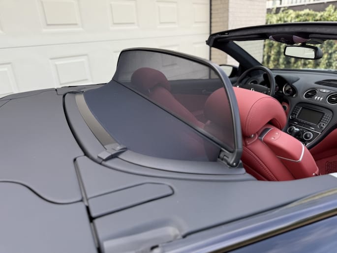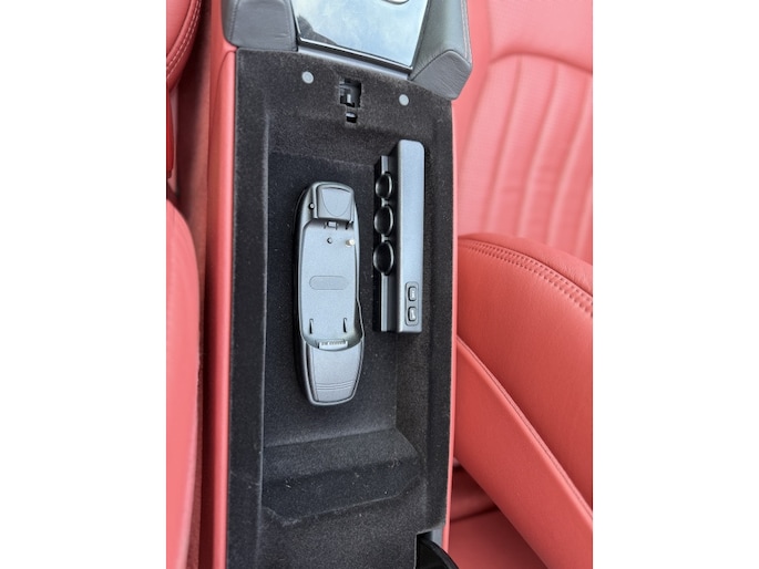 Der Innenraum des Mercedes-Benz ist aus rotem Leder gefertigt. Der Dachhimmel besteht aus schwarzem Alcantara. Darüber hinaus ist das Auto mit seinem originalen AM/FM-Radio/CD-Player/Navigationssystem mit Bose-Soundsystem, originalem Schaltknauf mit Start-/Stopp-Knopf, elektrischen Fensterhebern vorn, elektrisch verstellbaren Sitzen mit Memory-Funktion, Sitzheizung, Sitzbelüftung, Klimaanlage, Panoramadach und ein elektrisch betriebenes Hardtop ausgestattet! Das Armaturenbrett ist mit grauen Zierleisten versehen. Wie erwartet ist das Auto komplett original und komplett neu!