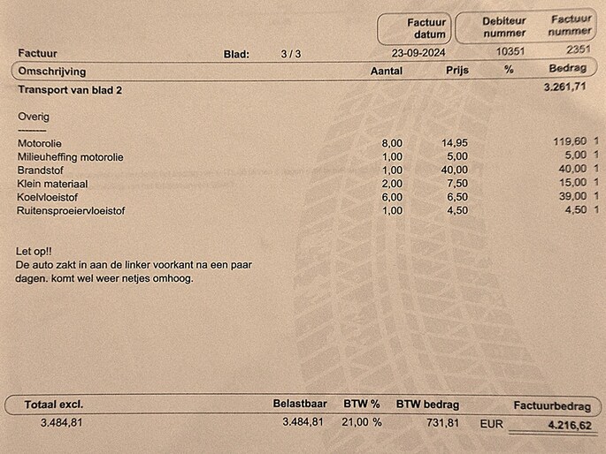 | Wegenbelasting/3mnd | € 333 - € 365 |
