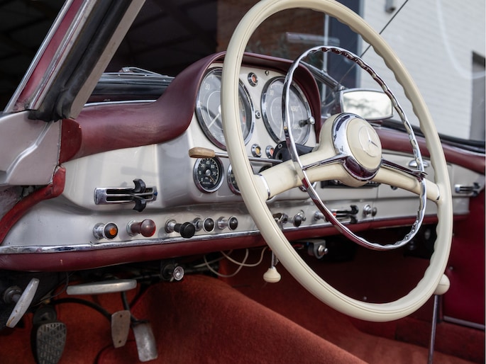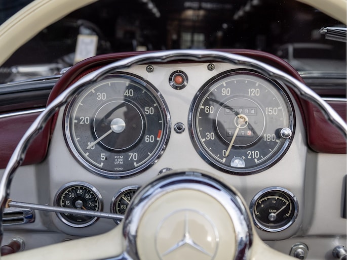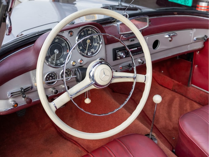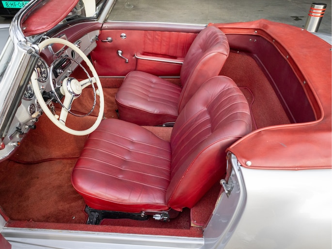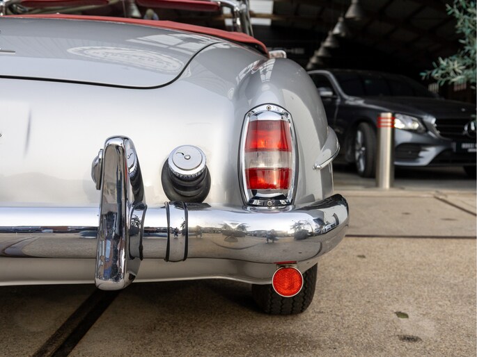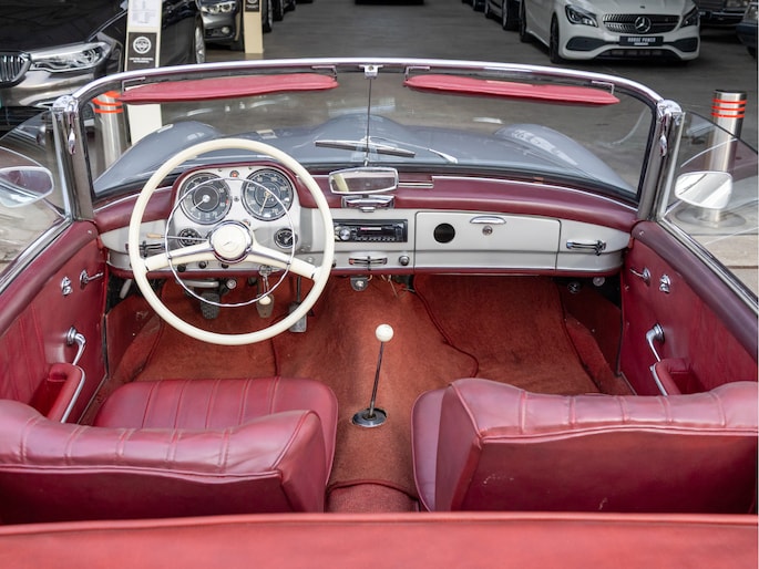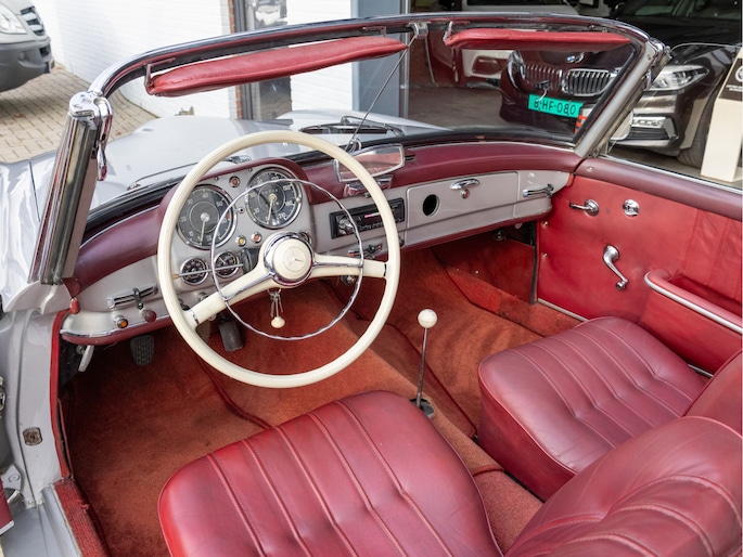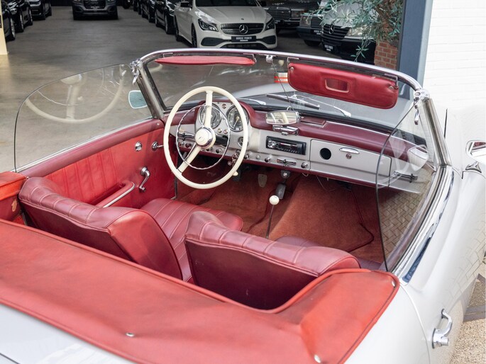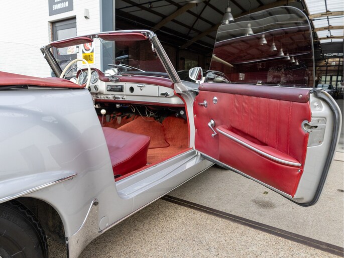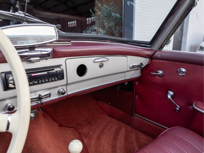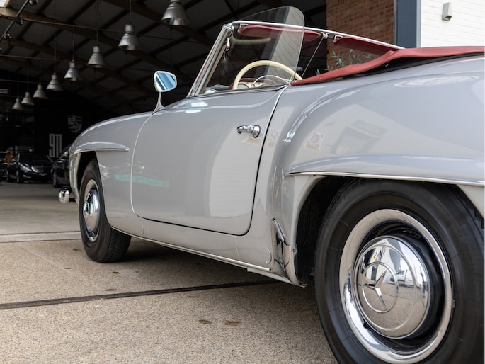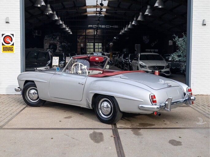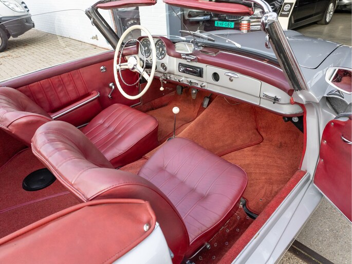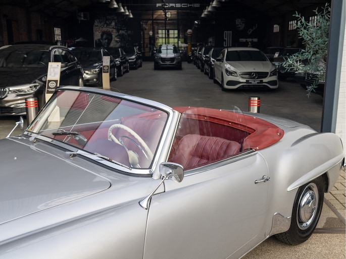 Mercedes-Benz 190 SL W121 uit het bouwjaar 1957 met een kilometerstand van slechts 9.734 km. Deze iconische roadster is uitgerust met een benzinemotor met 105 pk en een handgeschakelde transmissie. De Mercedes-Benz 190 SL staat wereldwijd bekend als een tijdloos designicoon en vormt de perfecte combinatie van klassieke elegantie, vakmanschap en rijbeleving. Het model kenmerkt zich door zijn sierlijke lijnen, karakteristieke grille en luxueuze uitstraling die tot op de dag van vandaag indruk maakt. Optisch presenteert deze klassieker zich als een echte liefhebbersauto met een authentieke uitstraling, terwijl het interieur de charme van een echte klassieke Mercedes ademt. Technisch betreft dit een auto die bedoeld is voor de ware verzamelaar of liefhebber die op zoek is naar een unieke en waardevast klassieke cabriolet met een rijke historie.