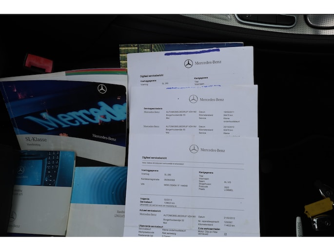 Mercedes Benz .. SL 280 Roadster .. Boekjes .. van oorsprong een Belgische auto .. met Carpass (Belgische Nap) en een uitdraai Nap Teller rapport ..
