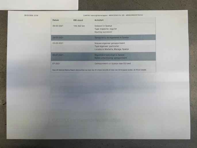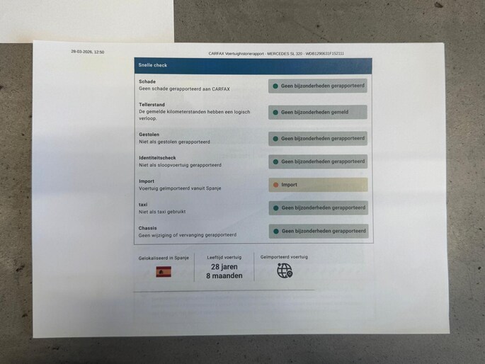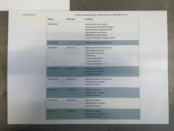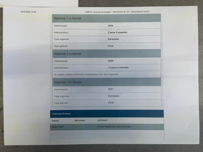 Deze R129 SL werd in juli 1997 nieuw geleverd in Italië door de Mercedes Benz dealer te San Martino Siccomario waar hij slechts kortstondig heeft doorgebracht. Toen de auto nog geen twee jaar oud was werd hij aangekocht bij een Duitse Mercedes Benz dealer uit de omgeving van Bruschal. De eigenaar daarna nam de auto mee in de koers van Spanje ¨Marbella¨ waar de auto sinds voorjaar 2004 verbleef. Ruim twee jaar later werd de auto verkocht aan een Spaanse eigenaar uit omgeving Malaga. Zijn bezit hield langdurig aan en de km-stand liep slechts gestaag op. Uiteindelijk werd deze SL aangeschaft door de laatste Nederlandse eigenaar van zijn destijds Spaanse vriend & buurman. Zo kwam de auto bij verkoop van zijn vakantie woning als huisraad mee naar Nederland in 2021 en werd de SL voorzien van Nederlandse registratie. De kilometerstand is geheel aantoonbaar en naast het originele serviceboekje met een groot aantal service stempels is er een Carfax en Nationale Auto Pas present. Tevens is er een ordner aanwezig van het onderhoud van de laatste jaren uit Spanje en Nederlands present (deels Mercedes dealer en deels specialist). De huidige kilometerstand is 117241km. Wat het algehele plaatje rond deze SL mede extra interessant maakt. Wij leveren deze SL aan u af inclusief check up , nieuwe apk en servicebeurt.