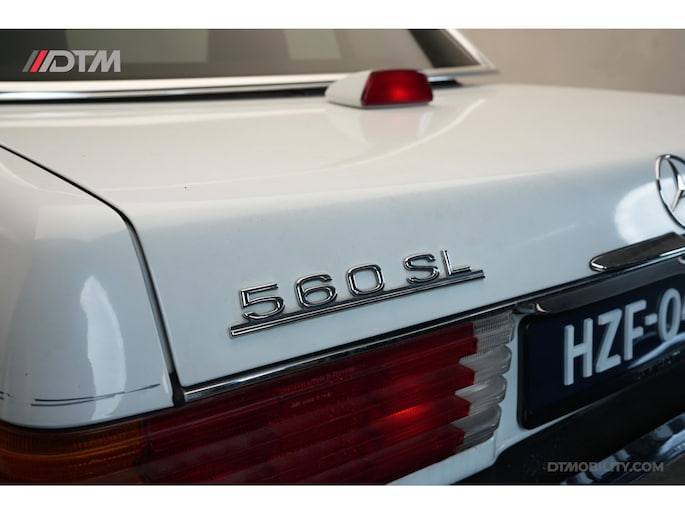 De 560SL was het absolute topmodel van de SL-reeks, destijds uitsluitend geleverd aan de Amerikaanse en Japanse markt. Onder de motorkap ligt de krachtige en zijdezachte 5.6 liter V8, die zorgt voor een rijervaring die zelfs naar moderne maatstaven nog ongekend comfortabel en soepel is.