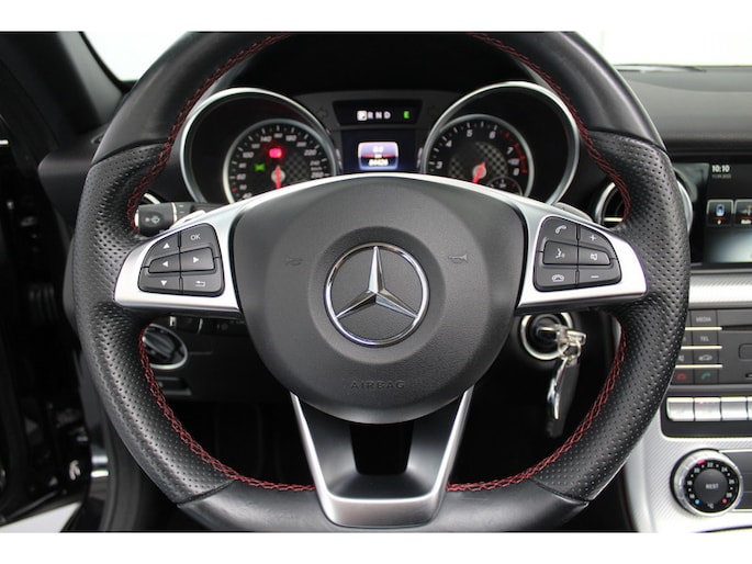 Had u de auto nou wel afgesloten? Met Connected Services checkt u het overal en altijd. Zorgeloos en geconcentreerd rijden? Het full map navigatiesysteem wijst de weg! Aan boord van deze Mercedes-Benz SLC is een achteropkomend verkeer waarschuwing voor extra veiligheid. Altijd twee handen aan het stuur, wel zo veilig en gemakkelijk. Ook daaraan is gedacht, met de audiobediening op het stuur. Om de veiligheid onderweg te verhogen, heeft deze Mercedes-Benz zowel een automatisch inschakelbare verlichting als een regensensor aan boord, zodat hij zelf de verlichting en de ruitenwissers kan inschakelen. Wat u ook in deze auto kunt vinden zijn schakelpaddles aan het stuur, parkeerassistent, cruise control, airconditioning en centrale deurvergrendeling met afstandsbediening.