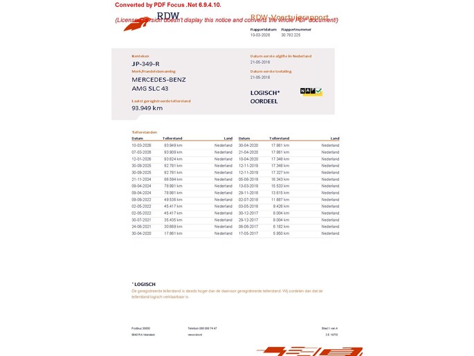 Kilometerstand gecontroleerd