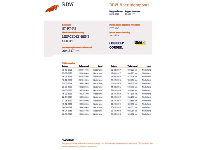 Kilometerstand gecontroleerd