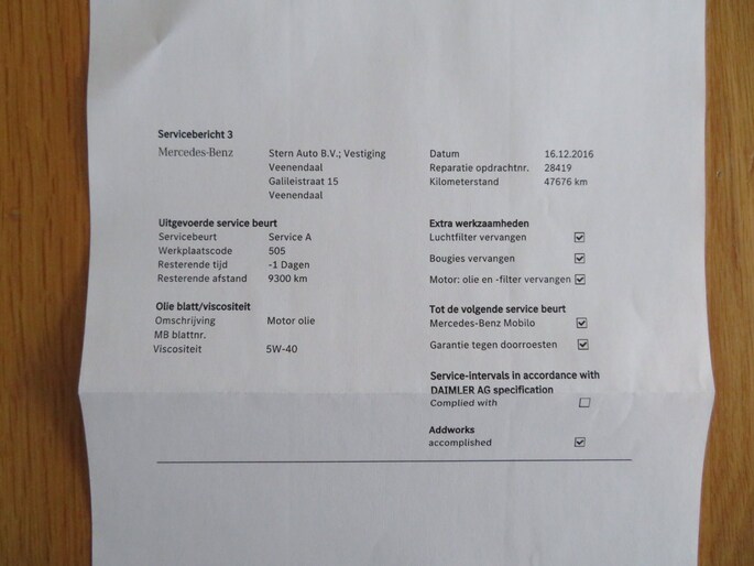 - Complere dealer Onderhoudshistorie