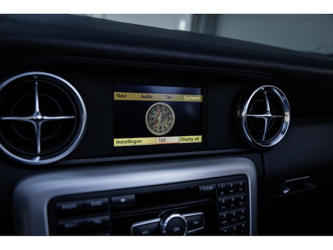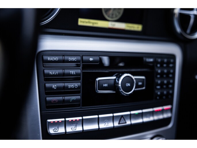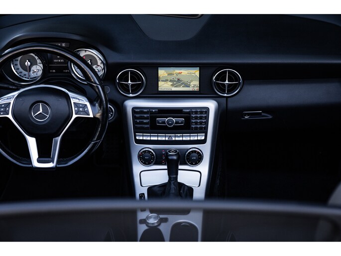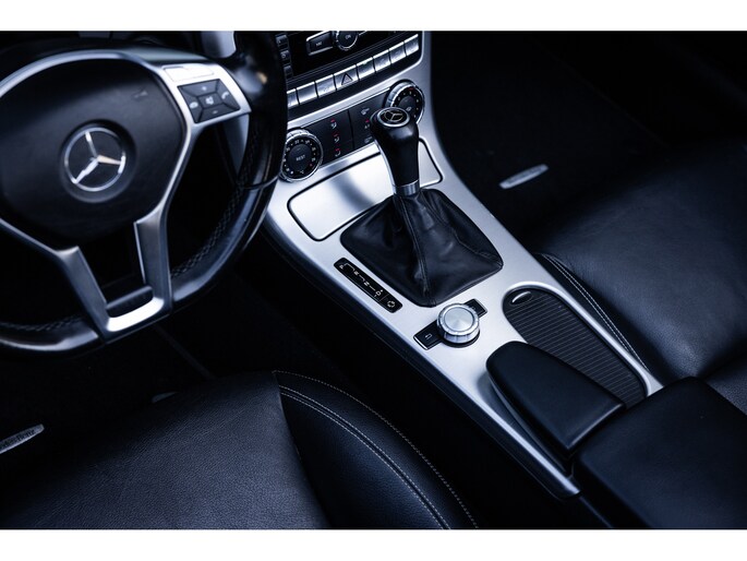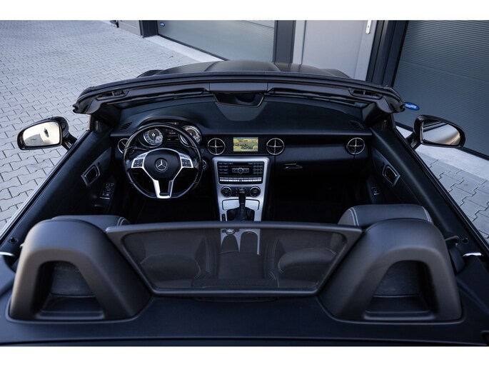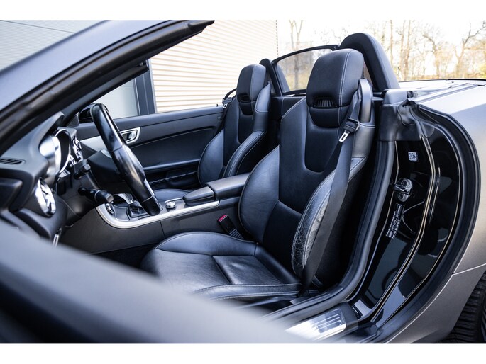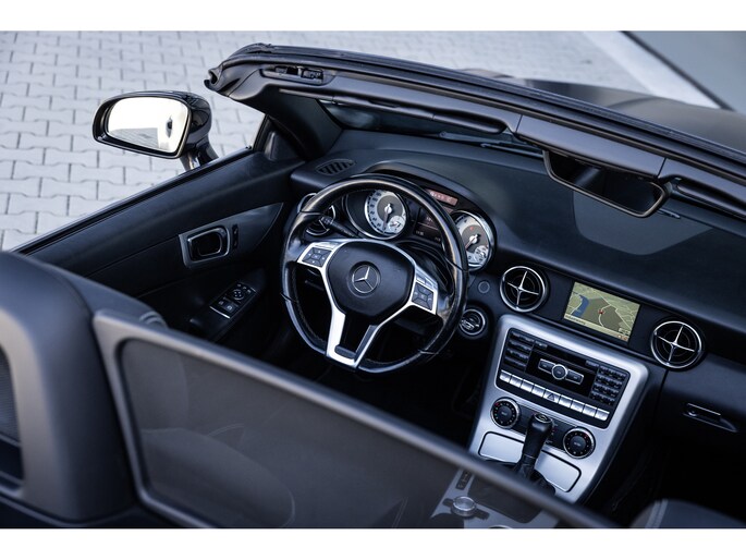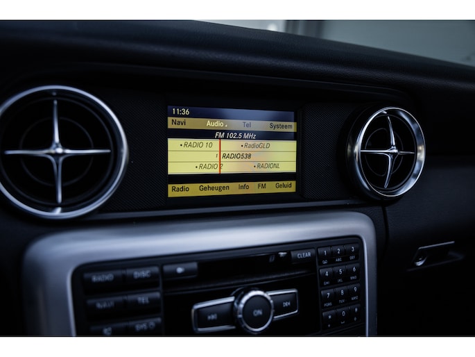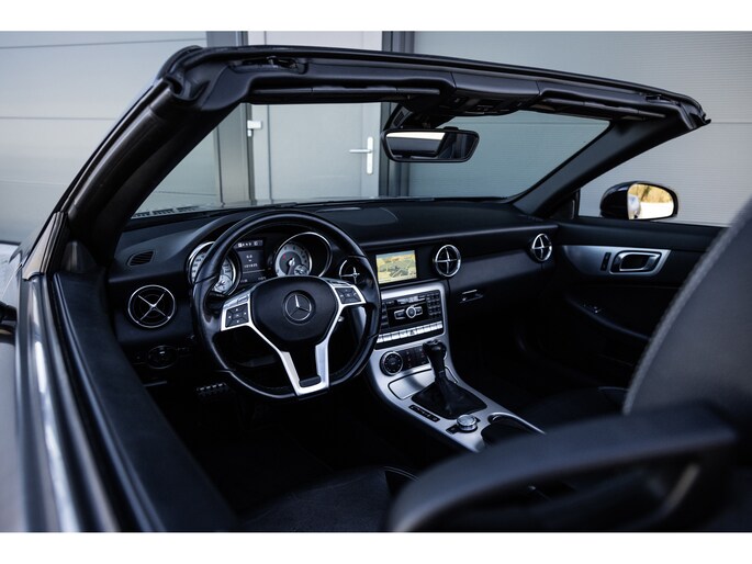 Deze SLK is ontzettend luxe samengesteld. Zo zetel je op stoelen met lederen bekleding en uiteraard zijn deze voorzien van stoelverwarming. Heel fijn is het Airscarf systeem waarbij de hoofdruimte verwarmd wordt middels warme lucht uit de bovenzijde van de stoelen. Het winscherm zorgt er voor dat er nauwelijks luchtwervelingen in het interieur zijn. De SLK is verder voorzien van automatisch geregelde airconditioning, het originele Mercedes-Benz audiosysteem met stuurwielbediening en multimedia met bluetooth audiostreaming, navigatiesysteem en bluetooth telefonie. Rondom zijn er parkeersensoren en uiteraard is de SLk voorzien van cruise control.