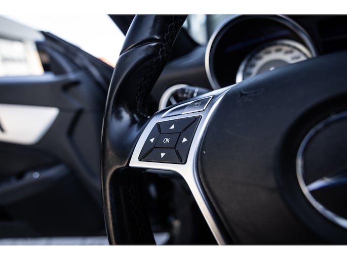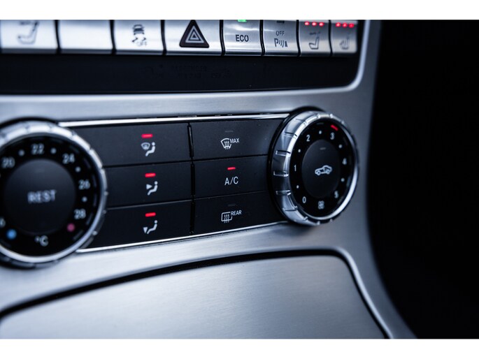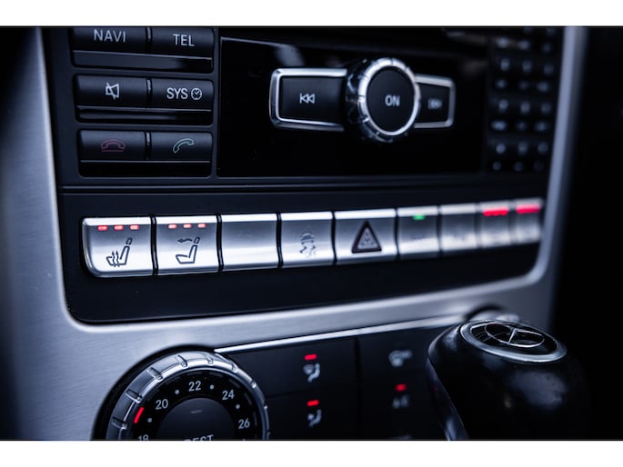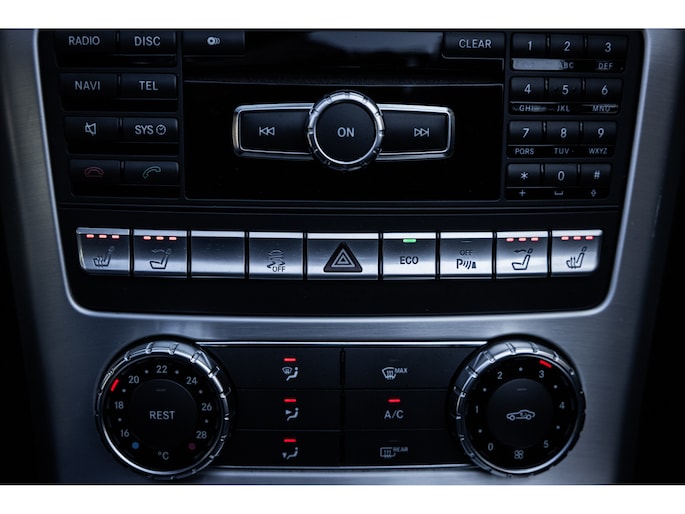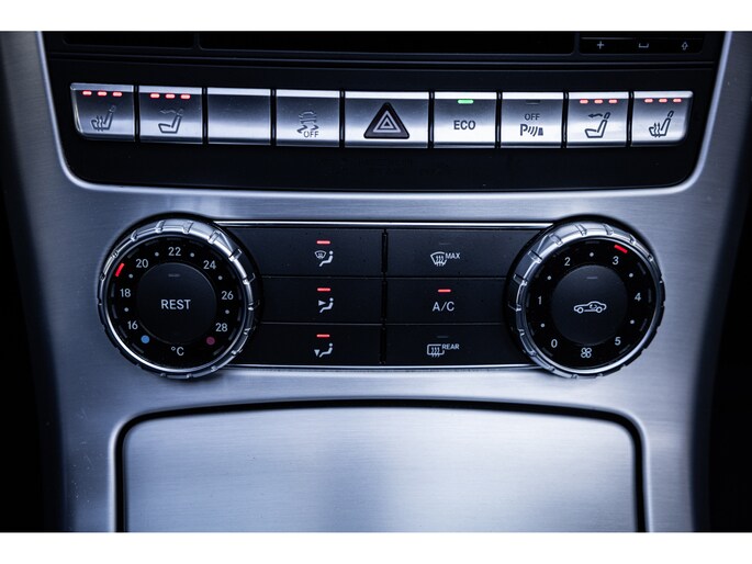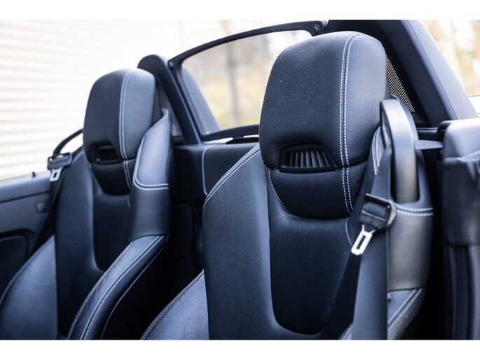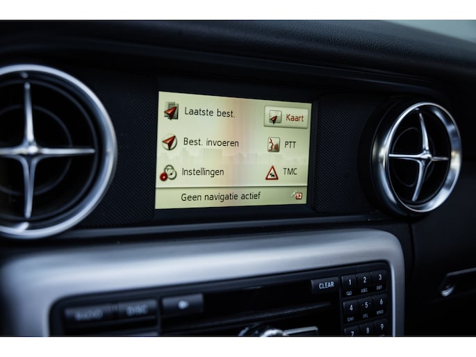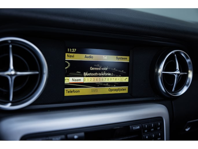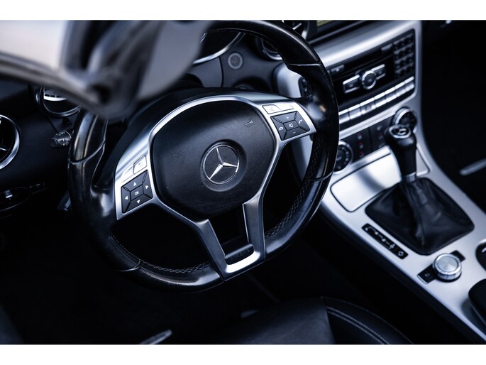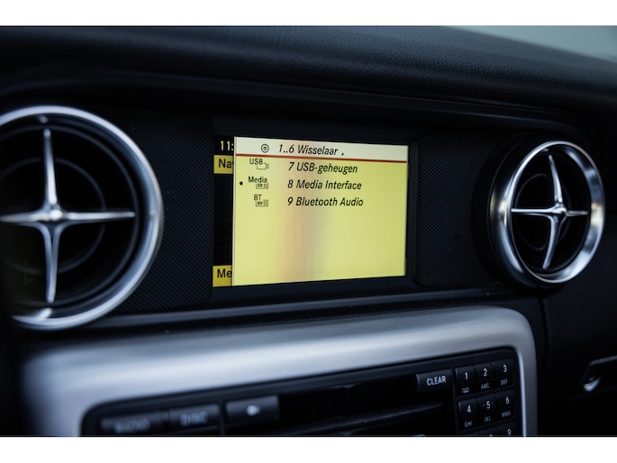 Deze SLK is ontzettend luxe samengesteld. Zo zetel je op stoelen met lederen bekleding en uiteraard zijn deze voorzien van stoelverwarming. Heel fijn is het Airscarf systeem waarbij de hoofdruimte verwarmd wordt middels warme lucht uit de bovenzijde van de stoelen. Het winscherm zorgt er voor dat er nauwelijks luchtwervelingen in het interieur zijn. De SLK is verder voorzien van automatisch geregelde airconditioning, het originele Mercedes-Benz audiosysteem met stuurwielbediening en multimedia met bluetooth audiostreaming, navigatiesysteem en bluetooth telefonie. Rondom zijn er parkeersensoren en uiteraard is de SLk voorzien van cruise control.