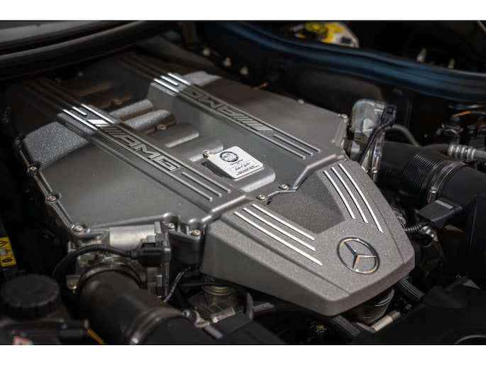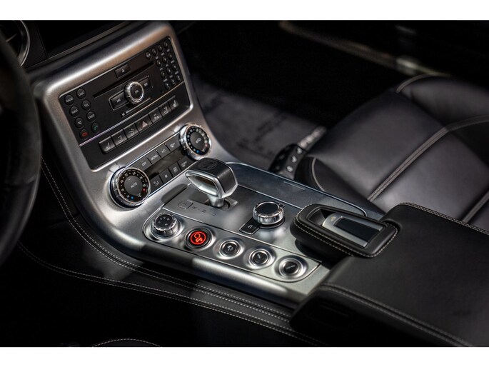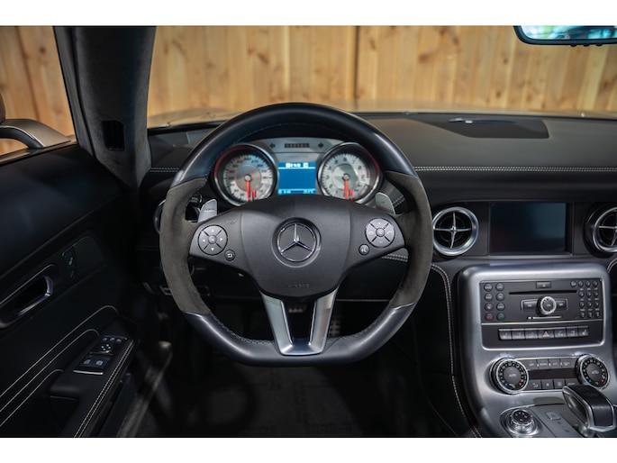 Under the hood sits the iconic 6.2L naturally aspirated V8, paired with an automatic AMG transmission and rear-wheel drive, delivering the raw, mechanical character the SLS is known for.
