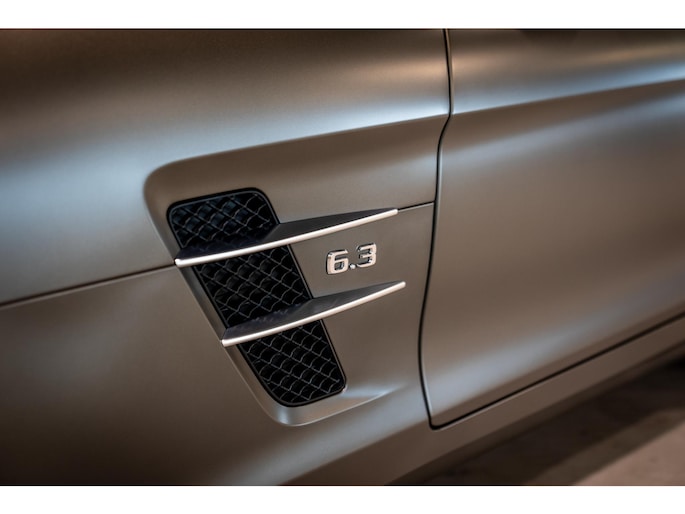 Offered is a particularly well-preserved Mercedes-Benz SLS AMG Roadster, finished in the rare factory Monza Grey Magno (designo matte).