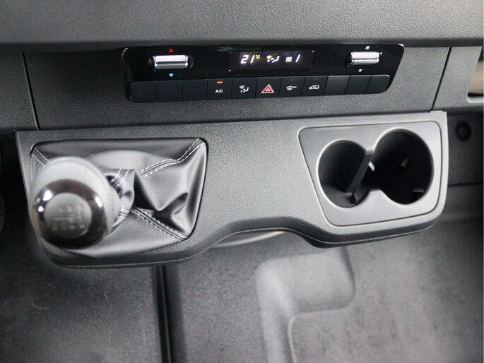 De Sprinter is o.a. voorzien van airco, trekhaak met 3.500 kg trekgewicht, 7" MBUX multimediasysteem met Apple CarPlay en Android Auto, cruise control en tweezits bijrijdersbank.