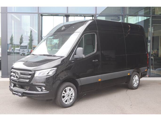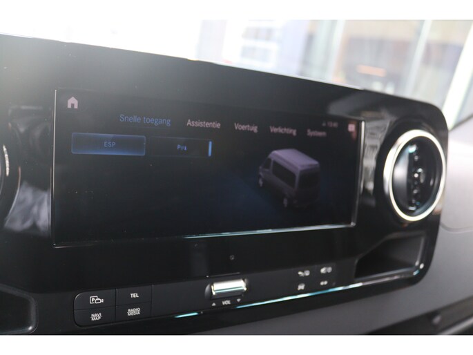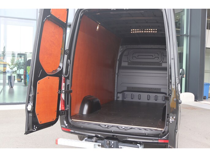De Sprinter is o.a. voorzien van airco, 10,25" MBUX navigatiesysteem met Apple CarPlay en Android Auto, navigatie, achteruitrijcamera, parkeersensoren voor en achter, trekhaak met 3.500 kg trekgewicht, elektrisch inklapbare buitenspiegels, LED Intelligent Light System, cruise control en 17" lichtmetalen velgen.