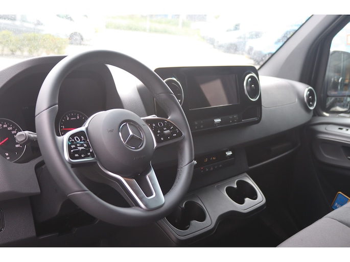 De Sprinter is o.a. voorzien van airco, 10,25" MBUX navigatiesysteem met Apple CarPlay en Android Auto, navigatie, achteruitrijcamera, parkeersensoren voor en achter, trekhaak met 3.500 kg trekgewicht, elektrisch inklapbare buitenspiegels, LED Intelligent Light System, cruise control en 17" lichtmetalen velgen.